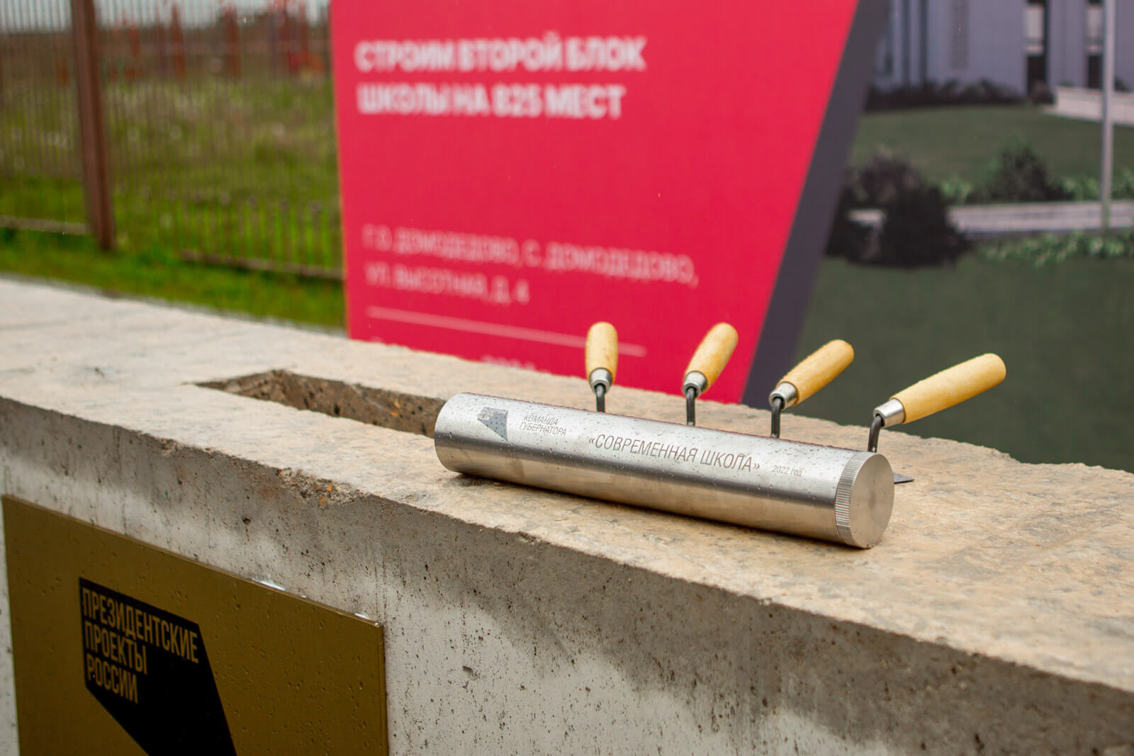 В ЖК Домодедово Парк сегодня состоялось радостное событие - была заложена капсула в основание камня нового блока школы №12 .